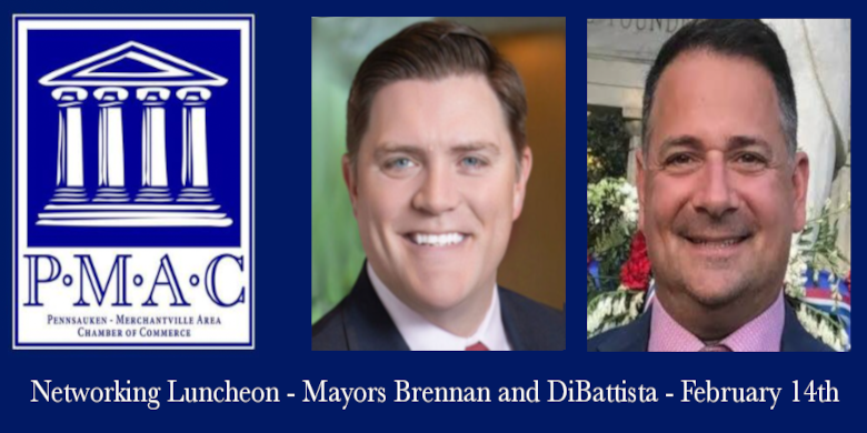 Meet with fellow business owners, have lunch and hear from the Mayors of Merchantville and Pennsauken at this month's PMAC networking luncheon. Mayors Ted Brennan and Marco DiBattista will be the guest speakers on February 14th at an 11:45 p.m. lunch meeting of the Pennsauken-Merchantville Area Chamber of Commerce (PMAC) to share information on economic development and take Q & A from guests. PMAC helps create opportunities for local businesses