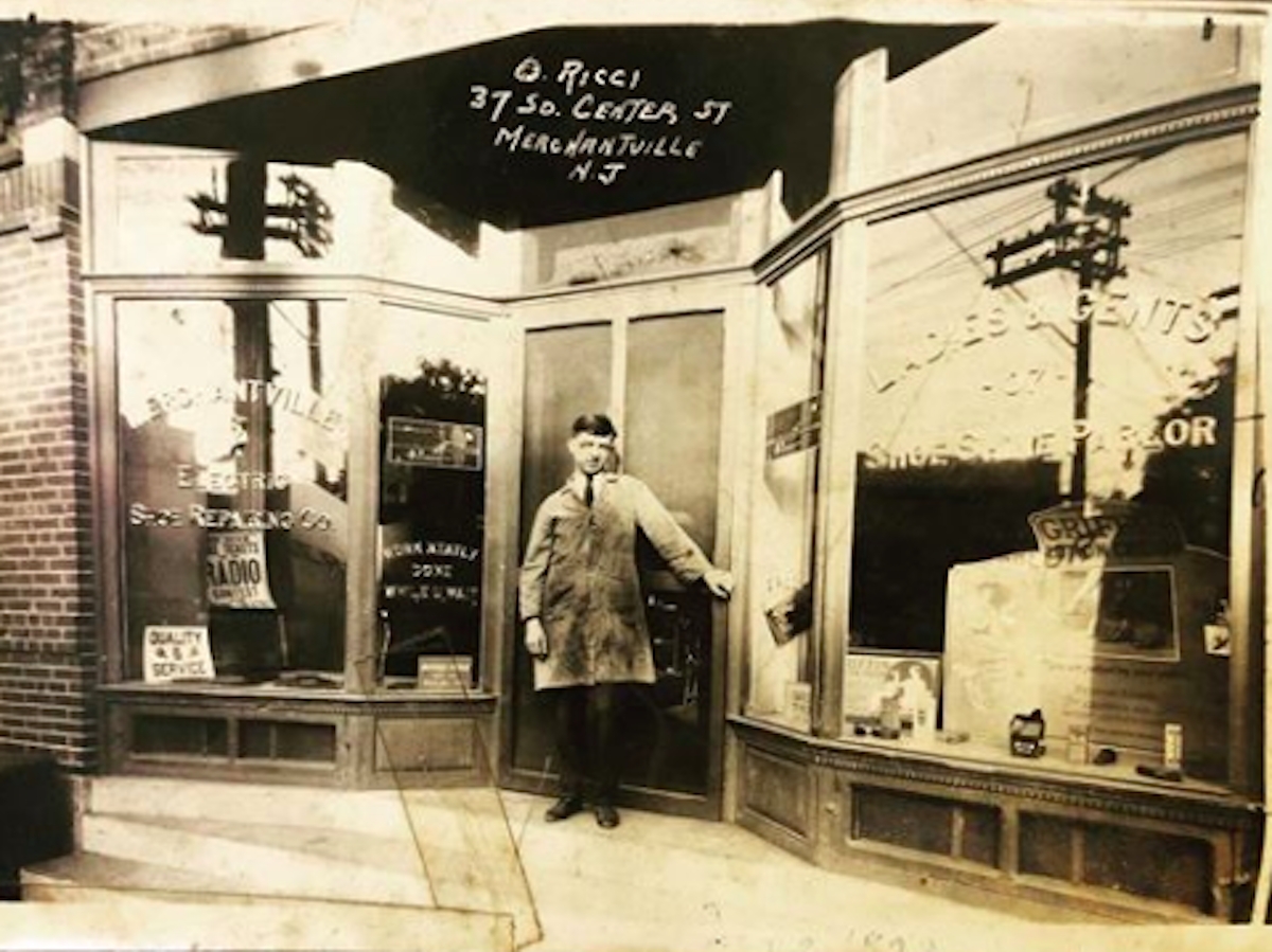 Merchantville Antiques and Salvage came across a photo of his grandfather's Shoe Repair Shop the other day. The picture, taken in 1928, shows shop owner Orlando Ricci posing in front of his storefront. Upon finding this treasure, Michael and Jaclyn Ricci remarked on how amazing it is to think that in a couple years their family will have lived here for 100 years. Truly, one of the most valuable characteristics of Merchantville life is the rich history of each generation owning a small business at 37 South Centre - from shoe repair shop to luncheonette to dress shop, and now their antiques and lamp repair shop.