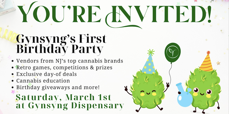 Gynsyng is turning one on March 1st! As Merchantville’s cannabis dispensary, we couldn’t be more grateful for all of the support we’ve been shown this last year. As our way of saying thanks, Gynsyng would like to personally invite you to celebrate the first anniversary of our Grand Opening! Join us on March 1st from 10:00 a.m. to 10:00 p.m. for: Vendors from NJ’s top cannabis brands; Retro games, competitions & prizes; Exclusive day-of deals; Cannabis education; and, Birthday giveaways. Must be 21+ to participate in this event.