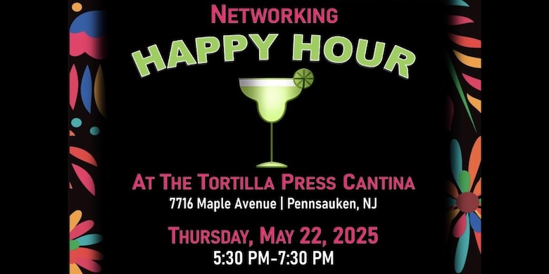 Join the Pennsauken-Merchantville Chamber of Commerce on Thursday, May 22nd, from 5:30-7:30 p.m. for Happy Hour at Chef Mark Smith's Tortilla Press Cantina, 7716 Maple Avenue in Pennsauken - right by the intersection of Haddonfiled Road - for an evening of mingling and networking with local business owners. Special drinks will be accompanied by complimentary appetizers. We look forward to seeing you there! Please RSVP by Monday, May 19th or call/text to 856-910-1100 or email: