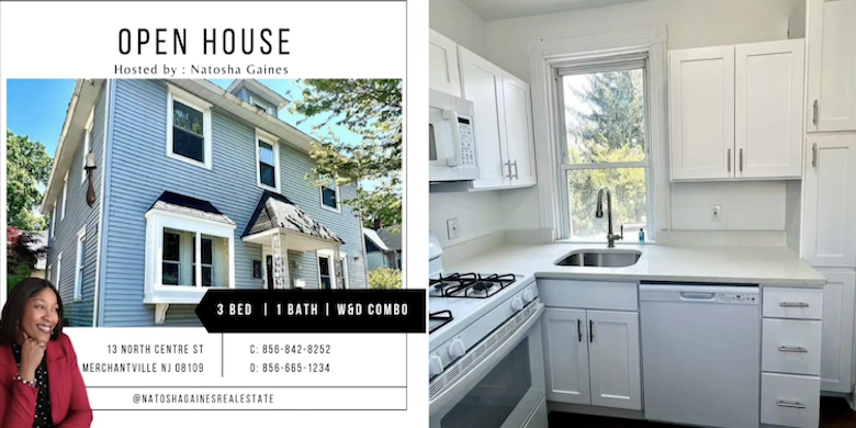Apartment OPEN HOUSE on Monday, May 15th, from 5:30p -7:00p hosted by Natosha Gaines, realtor with Garden State Properties Group, 5 W. Park Avenue, Merchantville. This 3 bedroom 1 bath apartment with an updated kitchen and washer/dryer is leased at $2,000/mo. Applications will be available on the spot.