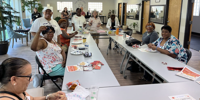 Designer Rachel Schaeffer of Ray of Sunshine Design+Embroidery, an embroidery and graphic design shop, was back volunteering at The WOW Center on January 29th for a monthly senior craft activity. where she made keychains with attendees. Past WOW workshops by Rachel have included a wreath making class for seniors, a custom embroidery workshop for their women’s cohort and this most recent jewelry making & spin art class for seniors. Her monthly