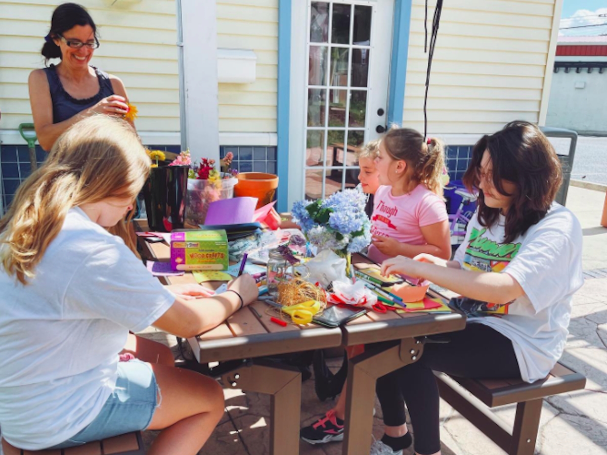 On Wednesday, June 23rd, Love in Motion Youth Group was at Charlie's Crepes spending a beautiful afternoon collaborating on an activity designed to spread a little love around our community! Charlie’s wife, Lisa Koory, who meticulously tends to Little Blooming Garden - a beautiful flower garden on site at the restaurant - generously donated jars, flowers and her time so youth group members could make little floral arrangements with cards and special sentiments for various members, teachers and businesses in the Merchantville community. Love in Motion was thankful for the opportunity to spread some love and highly recommends enjoying some crepes while taking in the natural beauty of Lisa's gardens!