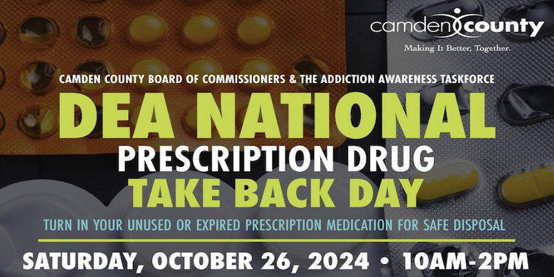 Mark your calendars! On Saturday, October 26th from 10:00 a.m. - 2:00 p.m., join the Camden County Board of Commissioners and the Addiction Awareness Taskforce for DEA National Prescription Drug Take Back Day.Turn in your unused or expired prescription medications for safe disposal and help protect your community. In 2023, the overdose rate topped 112,000, and this initiative helps reduce the availability of drugs for misuse. Check for a collection site near you and let's work together to keep our neighborhoods safe.