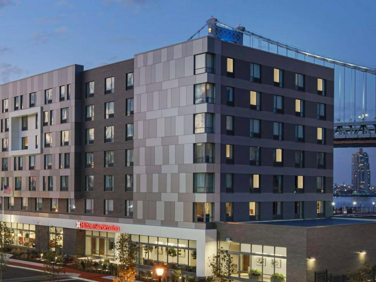 The Hilton Garden Inn Camden Waterfront is the first new hotel to be built in Camden in more than 50 years. Located on the Delaware River waterfront at1 Penn Street in Camden, the hotel, opened December 2020, is set to cater to the area’s growing business and tourism activities. This seven-story, 122,000-square-foot hotel offers 180 guest rooms, a 90-seat restaurant and lounge, multi-purpose meeting rooms, and a 3,300-square-foot event room, plus other hotel amenities. It's just a 10 minute walk from Adventure Aquarium and Camden Children's Garden and, across the river to Philadelphia for Penn’s Landing, Liberty Bell, and Museum of the American Revolution, all within five miles. The Water Street Grill offers breakfast, dinner, and room service. We have a fitness center and a 24-hour Pavilion Pantry. Photo gallery.