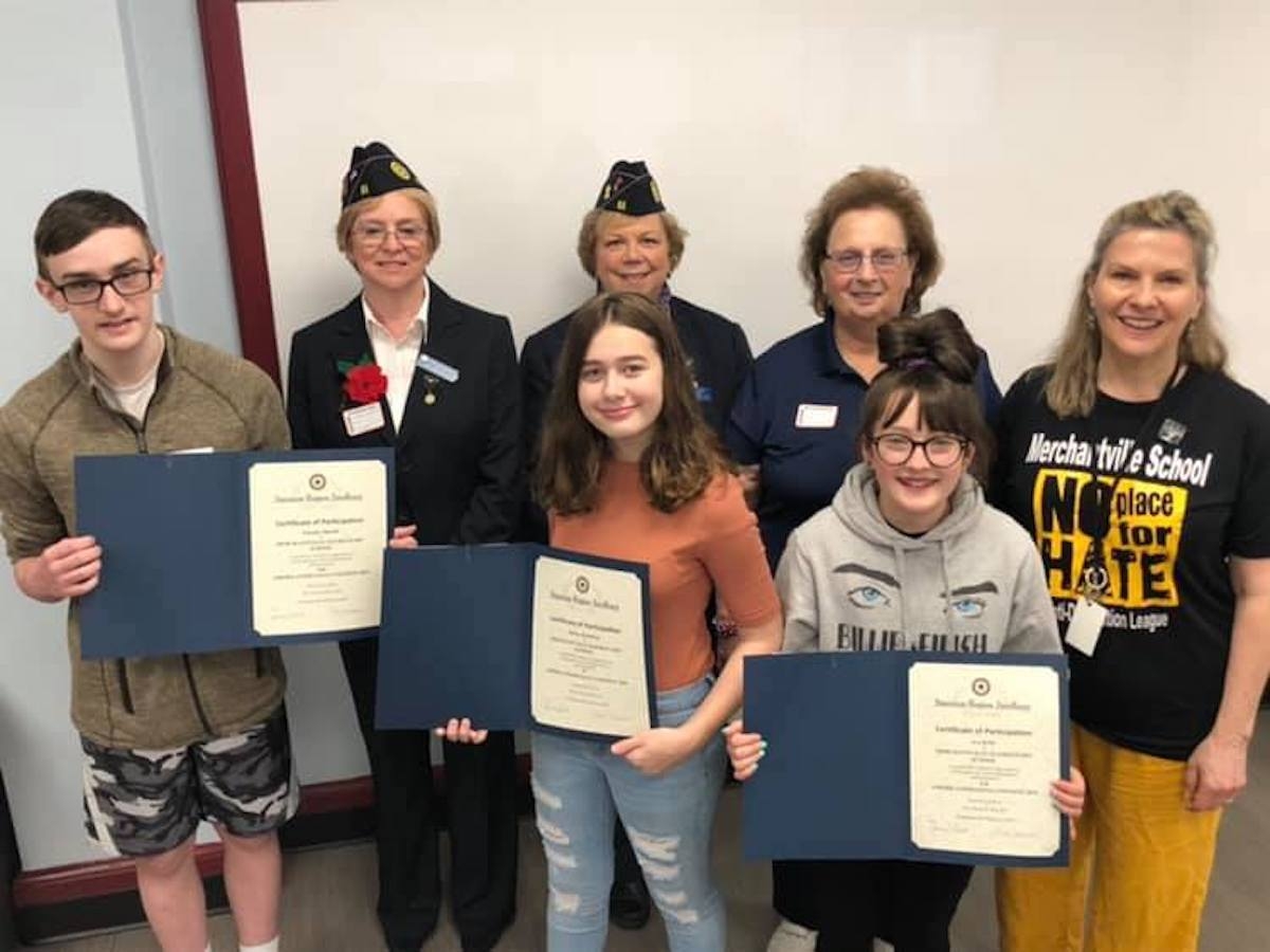Congratulations toMerchantville School students Jessica Katzberg, Tim Rocchi and Ava Kelly and teacher, Dina Turan, in winning the 2019 American Legion of Merchantville/Pennsauken essay contest about Americanism. Our MES students took first, second and third place in this annual competition sponsored by the American Legion Auxiliary for grades third (3) through twelfth (12). The contest has different classifications pertaining to grouping or classes. Essays need to be at least 150 to 500 words depending upon which “class” the student falls under.