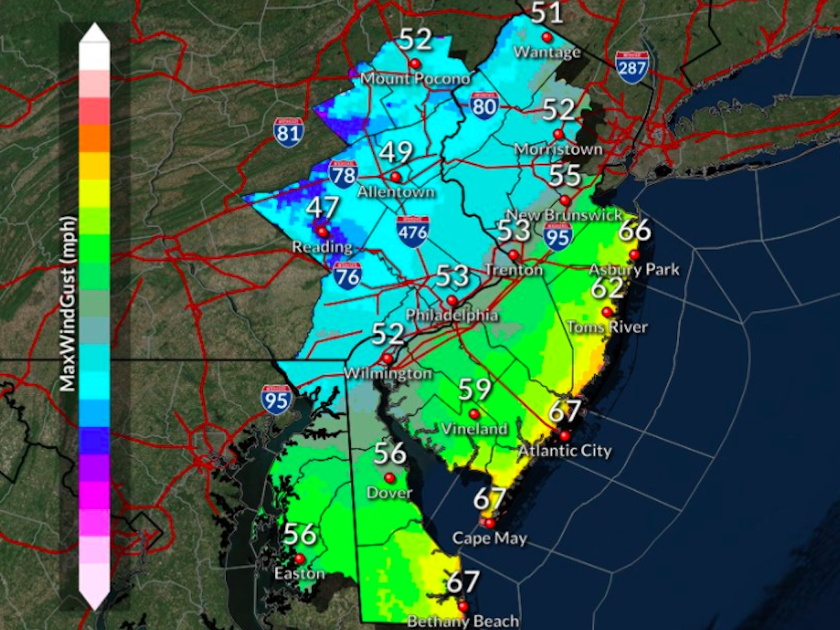 The National Weather Service in Mount Holly warns that multiple threats can be expected over the next 24 hours. Tornadoes, damaging winds, and very large hail are possible from the South on Sunday into the mid-Atlantic by Monday. Very strong winds, severe weather, heavy rainfall, even coastal flooding on the Chesapeake. A strong storm system will approach our area Sunday night into Monday. The main hazards associated with this system will be strong to damaging wind gusts and the potential for severe storms on Monday. Additionally 1-2 inches of rain can be expectedDamaging winds, with large hail and even an isolated tornado are possible Monday with the severe storms. Monitor the latest forecasts and warnings for updates on this situation. Fasten loose objects or shelter objects in a safe location prior to the onset of winds.